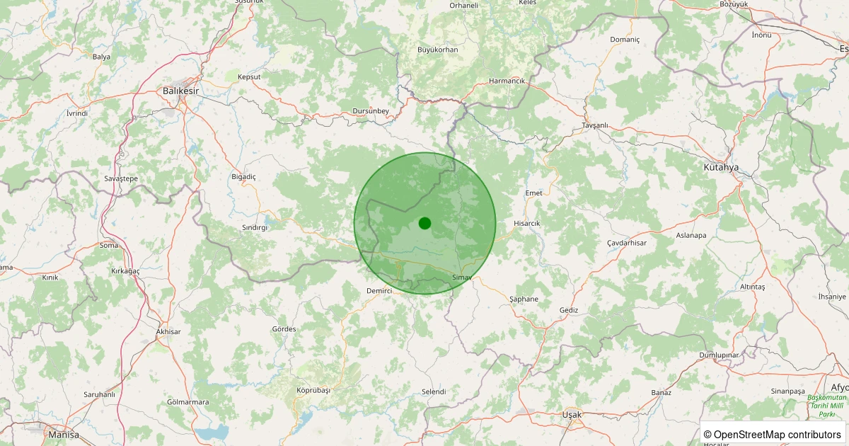 Son 7 gün içinde Simav noktasından 100 km yarıçap içerisinde meydana gelen diğer depremler: