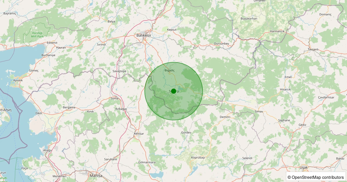 Son 7 gün içinde Sındırgı - Yaylacık noktasından 100 km yarıçap içerisinde meydana gelen diğer depremler: