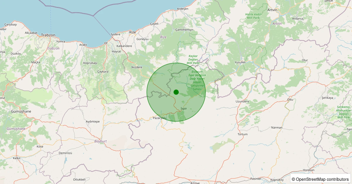 Son 7 gün içinde İspir - Moryayla noktasından 100 km yarıçap içerisinde meydana gelen diğer depremler: