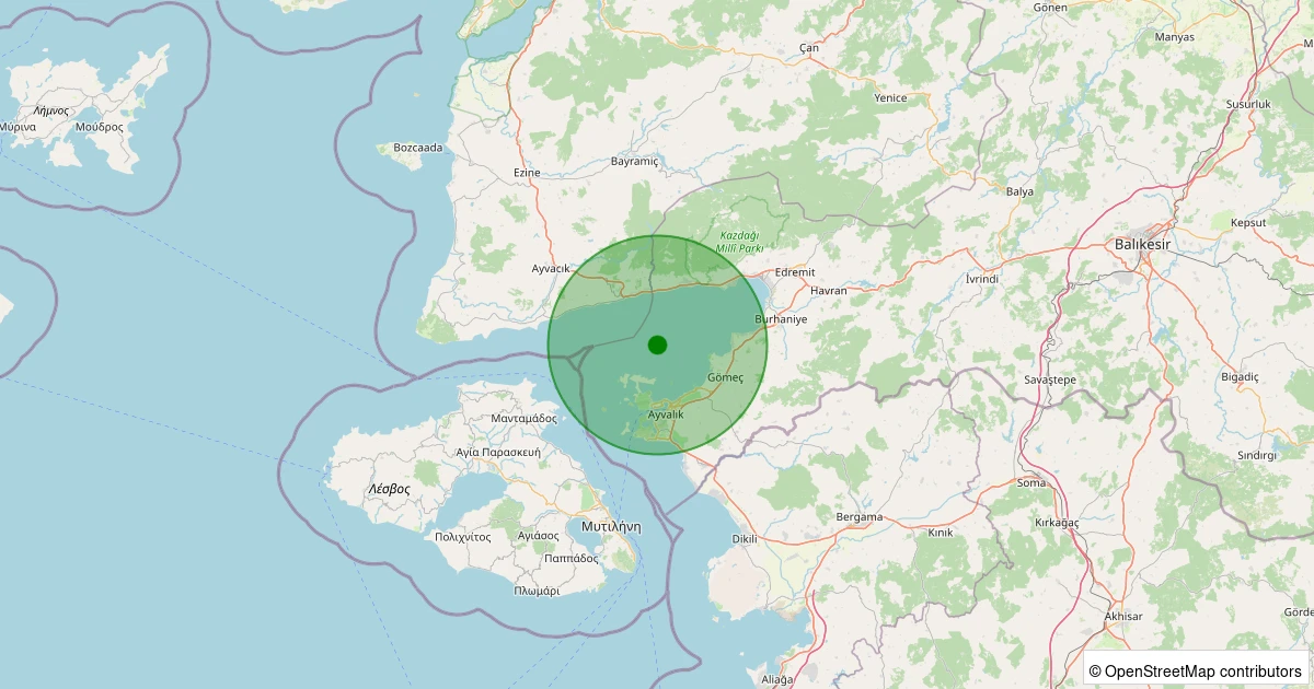 Son bir hafta içerisinde Ege Denizi - Edremit Körfezi - [11.90 km] Ayvacık (Çanakkale) noktasından 100 km yarıçap içerisinde toplamda 111 deprem kaydedilmiştir. Bu depremlerden en büyüğü 3.4 büyüklüğünde ve en sığ odaklısı 2.70 kilometre derinlikte gerçekleşmiştir.