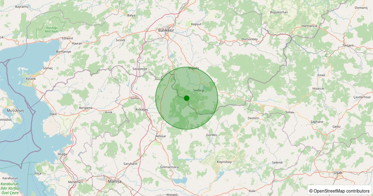 Son 7 gün içinde Sındırgı - Kertil noktasından 100 km yarıçap içerisinde meydana gelen diğer depremler: