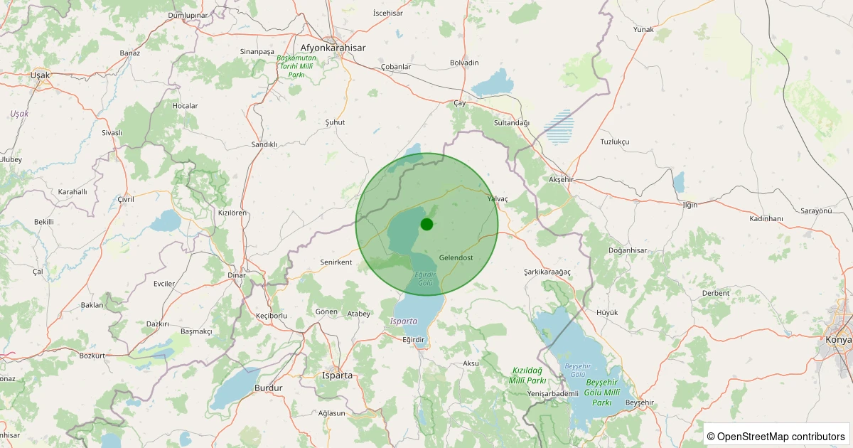 Son 7 gün içinde Yalvaç noktasından 100 km yarıçap içerisinde meydana gelen diğer depremler: