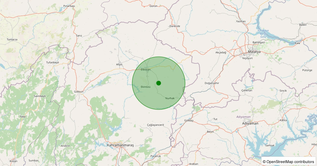 Son 7 gün içinde Nurhak - Ağcaşar Köyü noktasından 100 km yarıçap içerisinde meydana gelen diğer depremler: