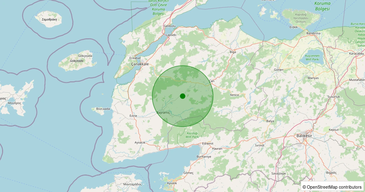 Son 7 gün içinde Bayramiç - Hacıbekirler Köyü noktasından 100 km yarıçap içerisinde meydana gelen diğer depremler:
