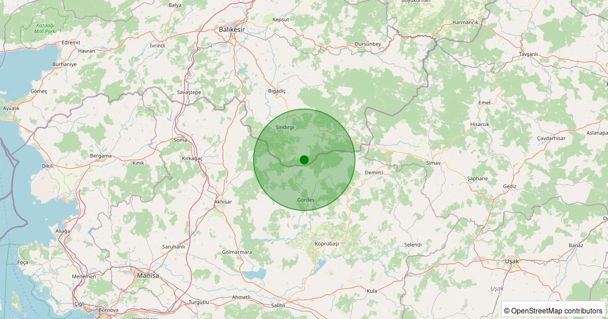 Son 7 gün içinde Sındırgı - Yüreğil/Merkez noktasından 100 km yarıçap içerisinde meydana gelen diğer depremler: