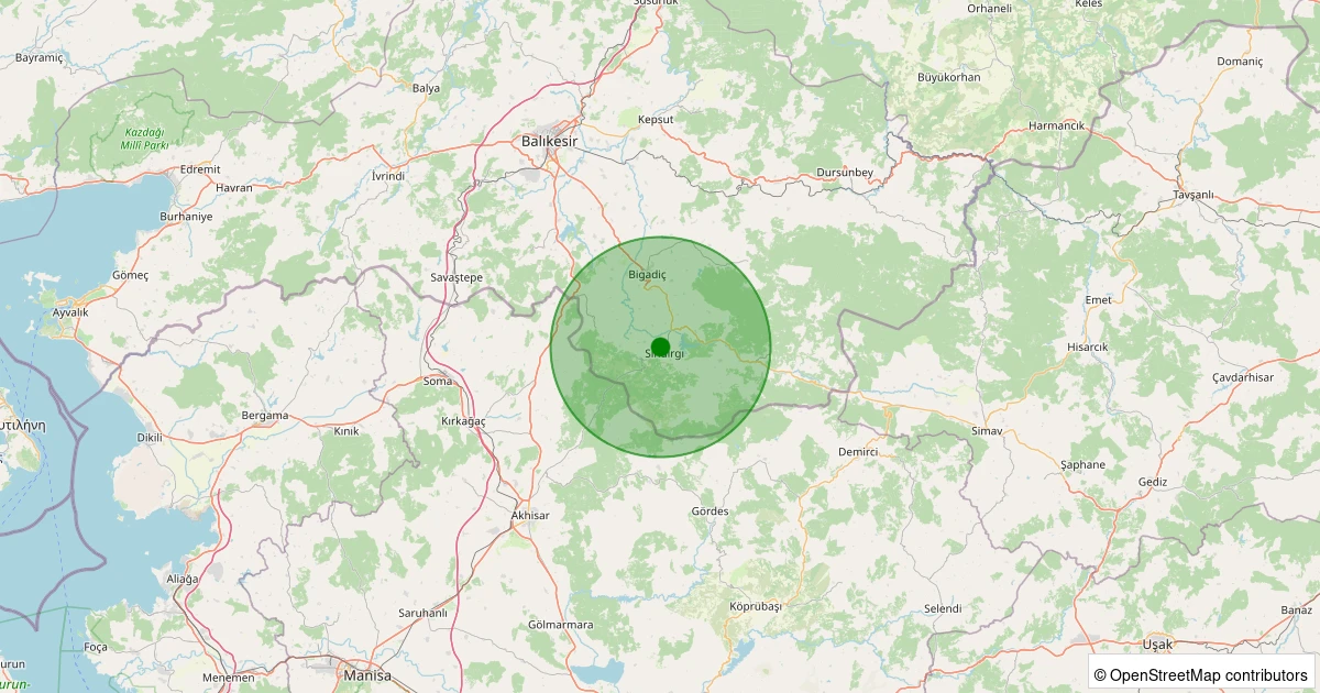 Son 7 gün içinde Sındırgı - Kurtuluş noktasından 100 km yarıçap içerisinde meydana gelen diğer depremler: