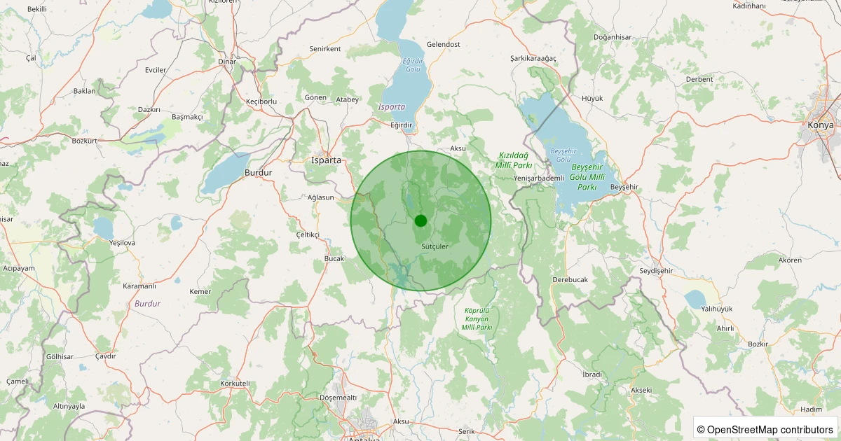 Son 7 gün içinde Sütçüler - Karadiken Köyü noktasından 100 km yarıçap içerisinde meydana gelen diğer depremler: