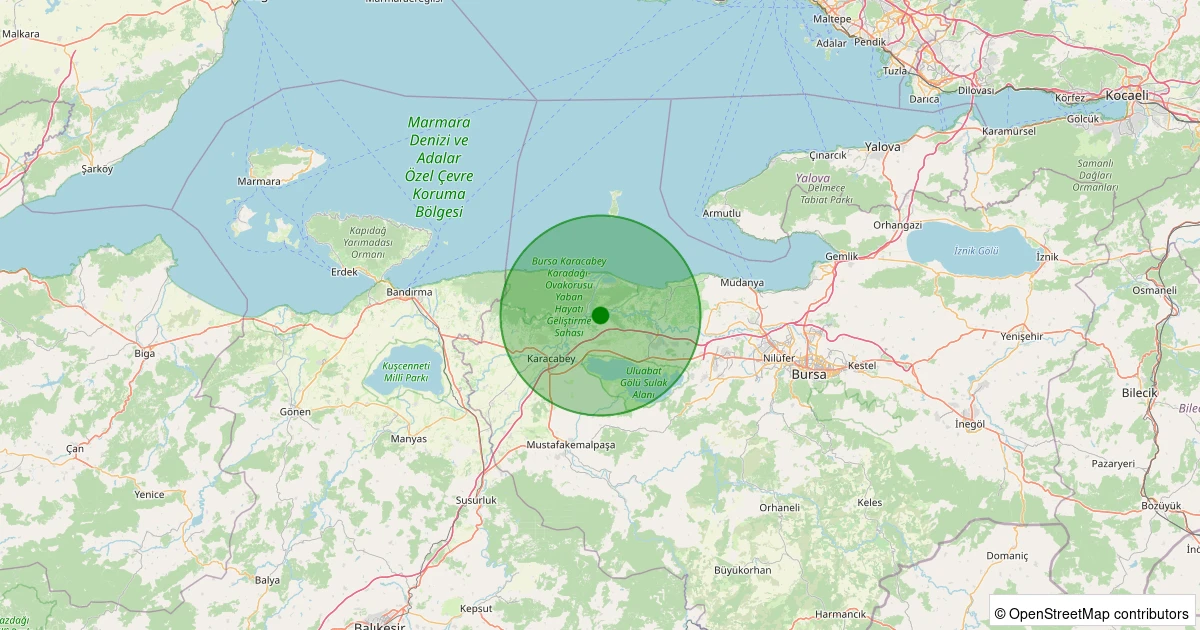Son bir hafta içerisinde Bursa şehri Karacabey noktasından 100 km yarıçap içerisinde toplamda 61 deprem kaydedilmiştir. Bu depremlerden en büyüğü 2.6 büyüklüğünde ve en sığ odaklısı 0.00 kilometre derinlikte gerçekleşmiştir.