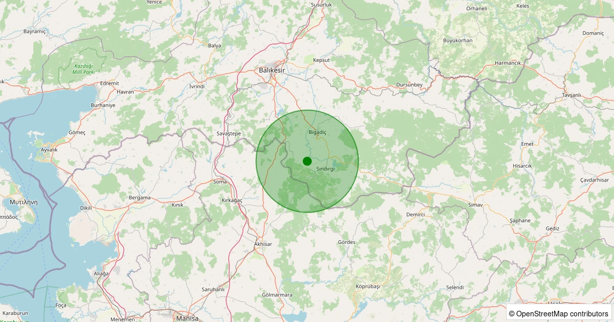 Son 7 gün içinde Sındırgı - Küçükbükü noktasından 100 km yarıçap içerisinde meydana gelen diğer depremler: