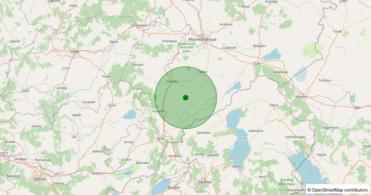 Son bir hafta içerisinde Afyonkarahisar şehri Dinar noktasından 100 km yarıçap içerisinde toplamda 21 deprem kaydedilmiştir. Bu depremlerden en büyüğü 2.1 büyüklüğünde ve en sığ odaklısı 4.80 kilometre derinlikte gerçekleşmiştir.