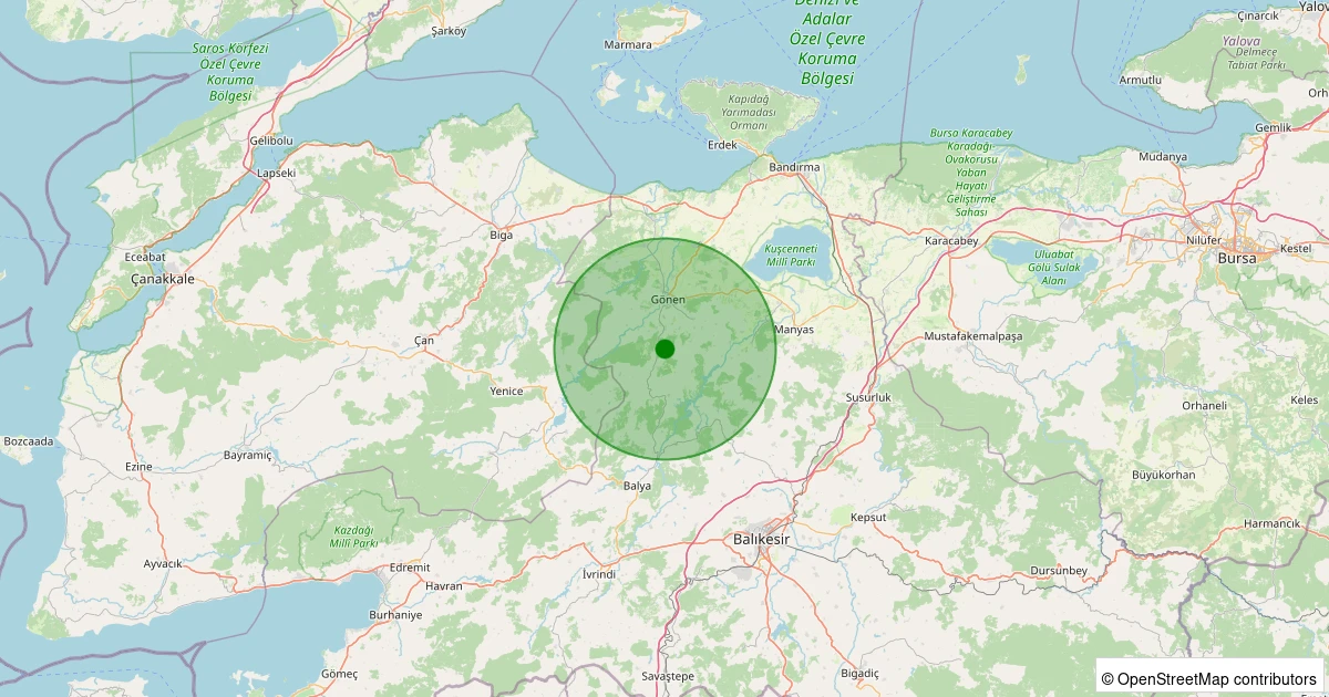 Son 7 gün içinde Gönen - Sebepli noktasından 100 km yarıçap içerisinde meydana gelen diğer depremler:
