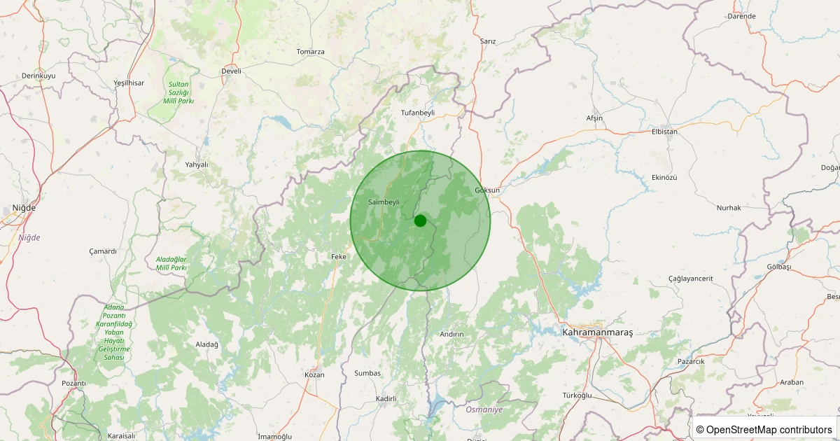 Son 7 gün içinde Saimbeyli - Aksaağaç noktasından 100 km yarıçap içerisinde meydana gelen diğer depremler: