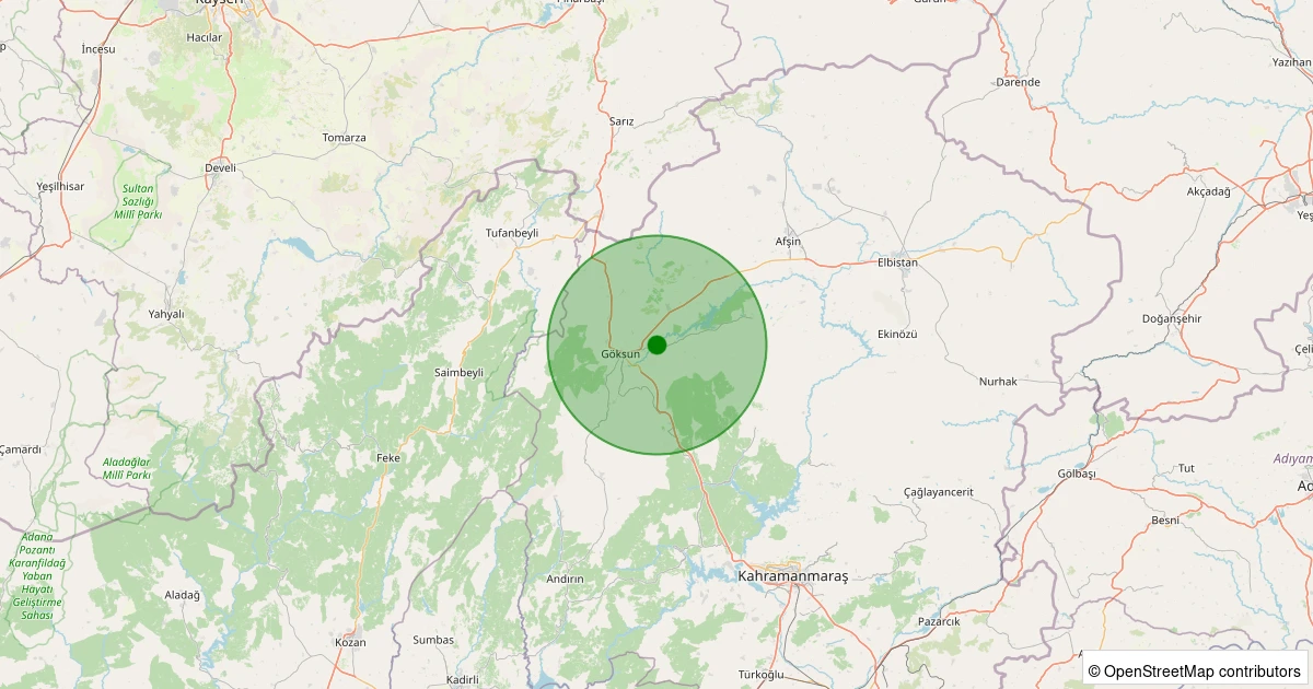 Son 7 gün içinde Göksun noktasından 100 km yarıçap içerisinde meydana gelen diğer depremler:
