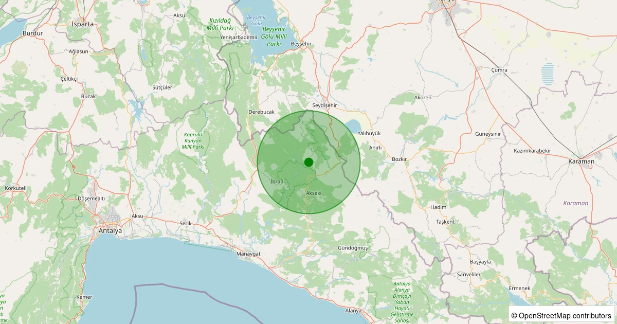 Son 7 gün içinde Akseki - Cevizli/Fevzi Çakmak noktasından 100 km yarıçap içerisinde meydana gelen diğer depremler: