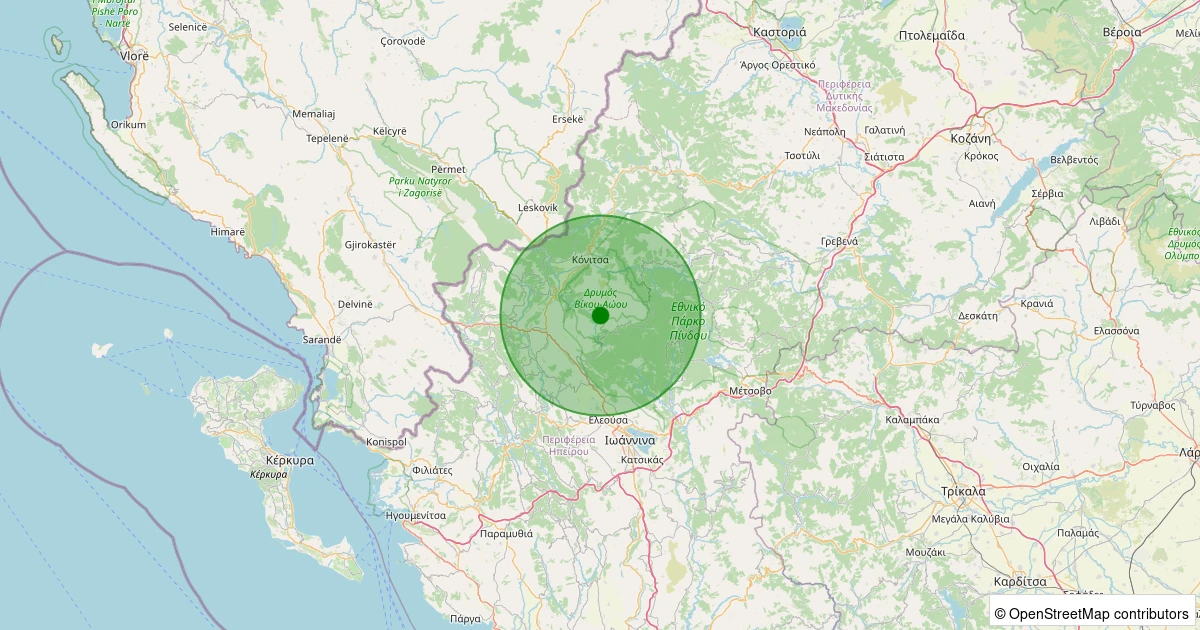 Son bir hafta içerisinde Ioannina, Ipeiros (Yunanistan) noktasından 100 km yarıçap içerisinde toplamda 2 deprem kaydedilmiştir. Bu depremlerden en büyüğü 3.6 büyüklüğünde ve en sığ odaklısı 5.00 kilometre derinlikte gerçekleşmiştir.