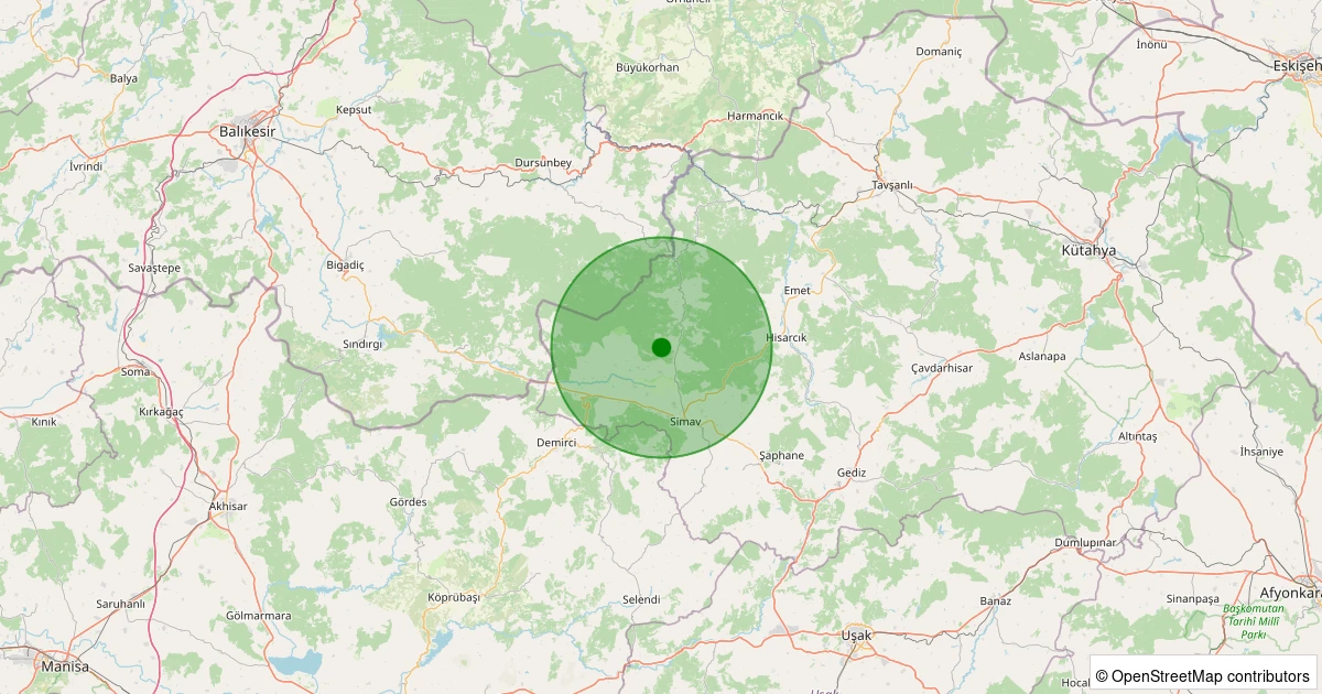 Son 7 gün içinde Simav - Koyunoba Köyü noktasından 100 km yarıçap içerisinde meydana gelen diğer depremler: