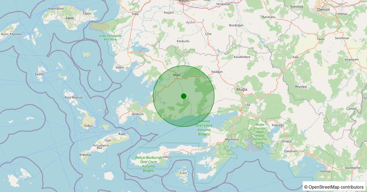 Son 7 gün içinde Milas - İkizköy noktasından 100 km yarıçap içerisinde meydana gelen diğer depremler:
