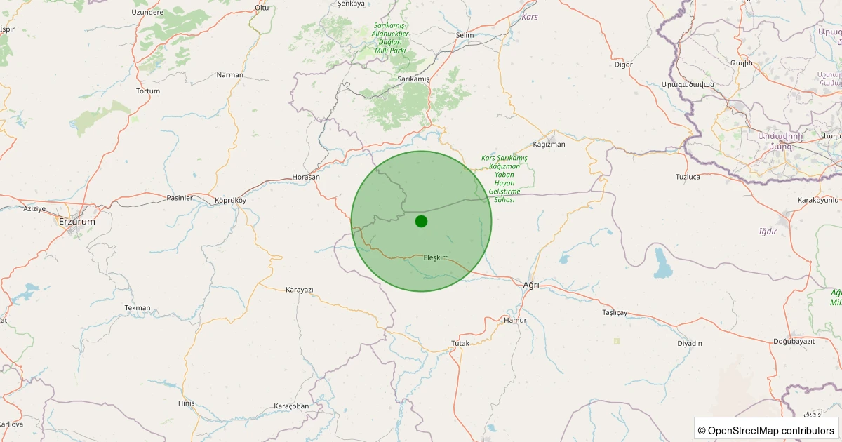 Son 7 gün içinde Eleşkirt - Tahir Köyü noktasından 100 km yarıçap içerisinde meydana gelen diğer depremler: