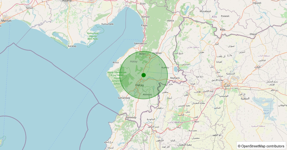 Son 7 gün içinde Antakya - Büyükdalyan noktasından 100 km yarıçap içerisinde meydana gelen diğer depremler: