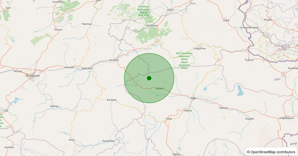 Son 7 gün içinde Eleşkirt - Çatkösedağ Köyü noktasından 100 km yarıçap içerisinde meydana gelen diğer depremler: