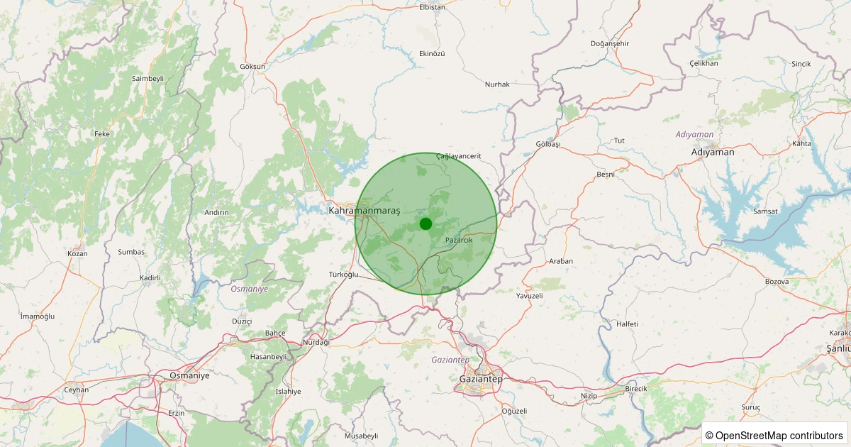 Son 7 gün içinde Dulkadiroğlu - Elmalar noktasından 100 km yarıçap içerisinde meydana gelen diğer depremler: