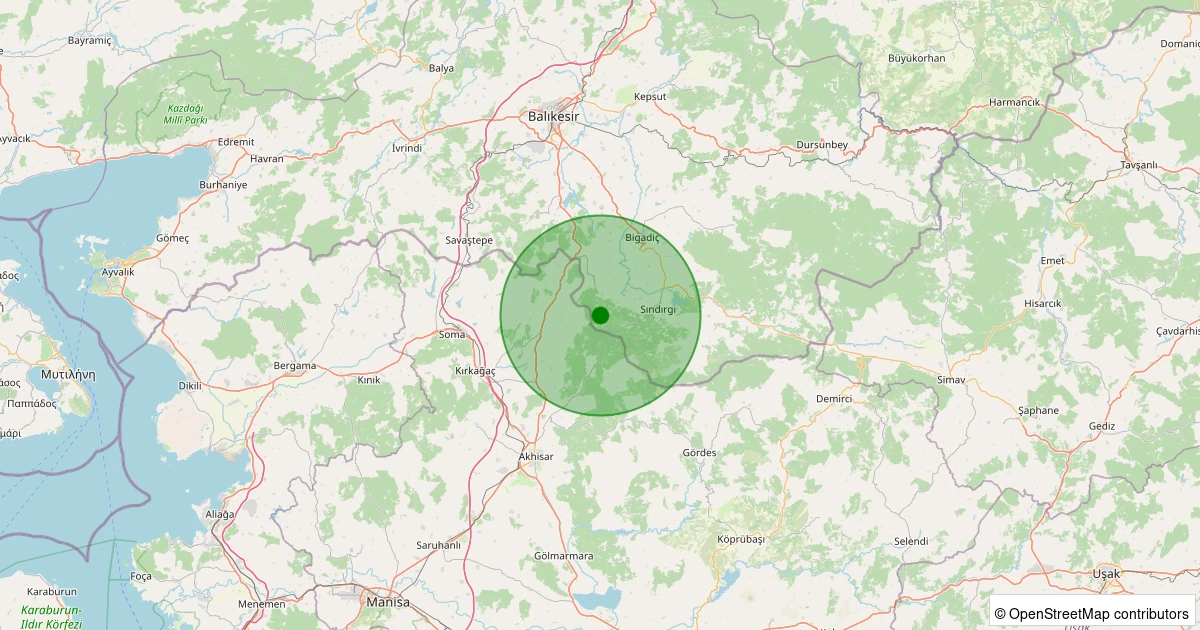 Son 7 gün içinde Sındırgı - Eğridere noktasından 100 km yarıçap içerisinde meydana gelen diğer depremler: