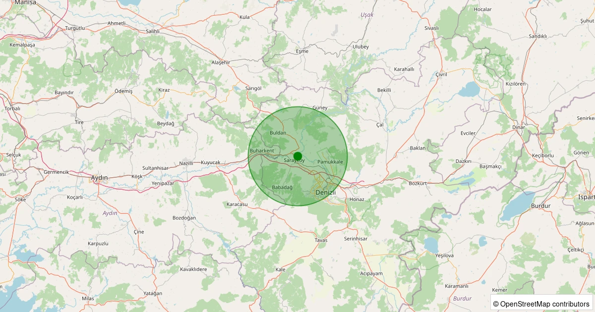 Son 7 gün içinde Sarayköy - Turan noktasından 100 km yarıçap içerisinde meydana gelen diğer depremler: