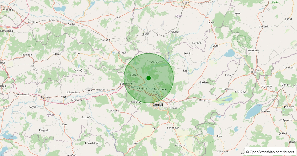 Son 7 gün içinde Buldan - Yenicekent noktasından 100 km yarıçap içerisinde meydana gelen diğer depremler: