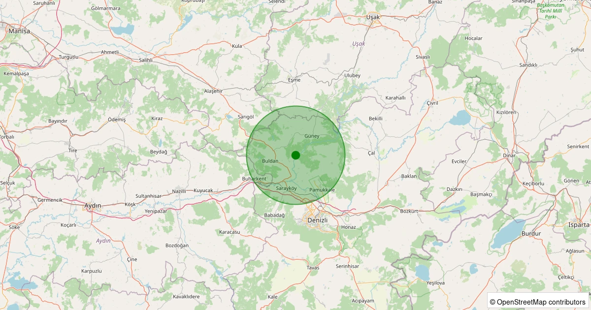 Son 7 gün içinde Buldan - Yenicekent noktasından 100 km yarıçap içerisinde meydana gelen diğer depremler: