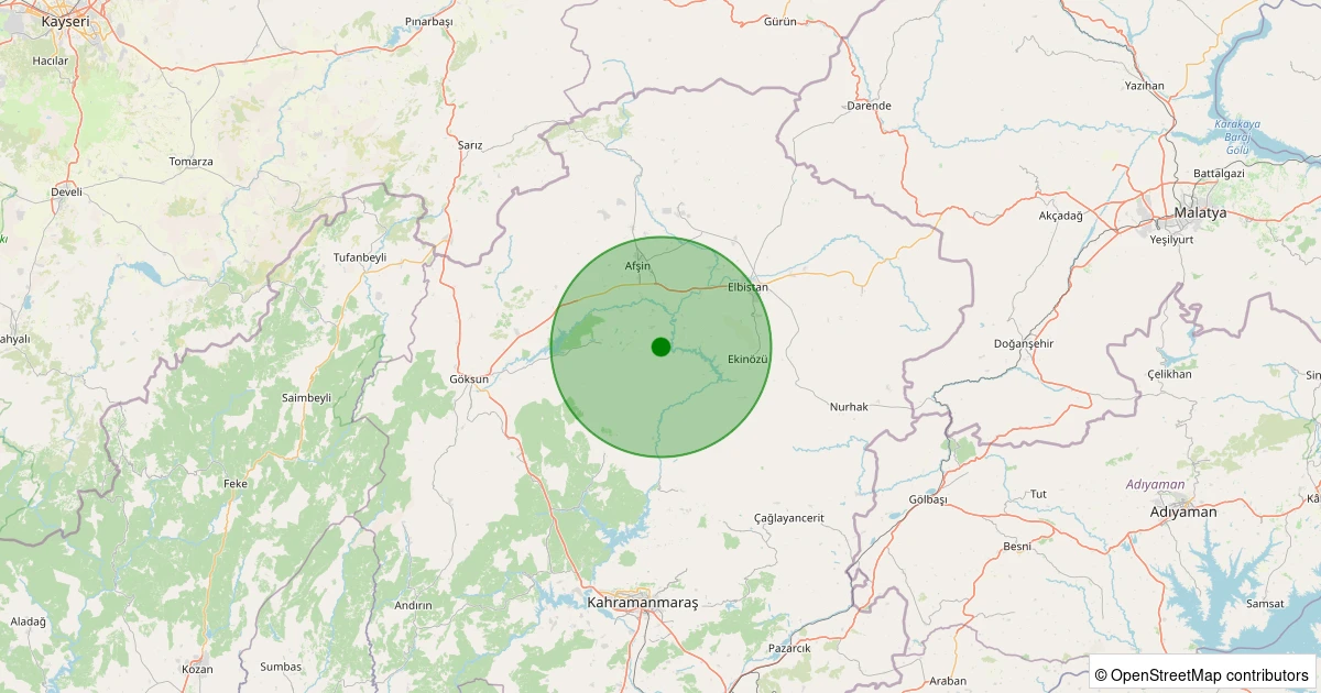 Son 7 gün içinde Göksun - Karadut noktasından 100 km yarıçap içerisinde meydana gelen diğer depremler: