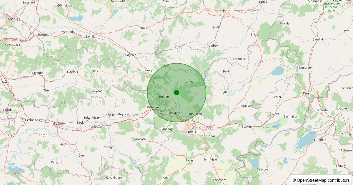 Son 7 gün içinde Buldan - Yenicekent noktasından 100 km yarıçap içerisinde meydana gelen diğer depremler:
