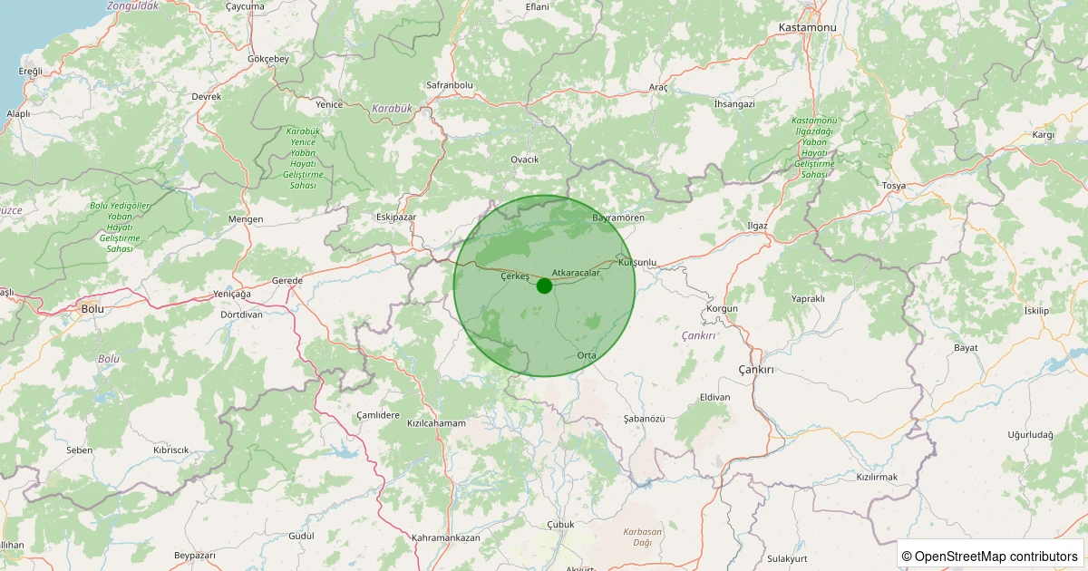 Son 7 gün içinde Çerkeş - Karamustafa Köyü noktasından 100 km yarıçap içerisinde meydana gelen diğer depremler: