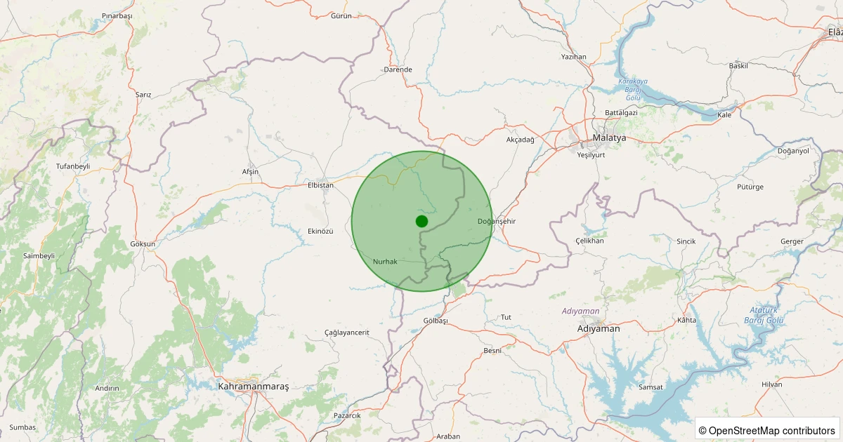 Son 7 gün içinde Elbistan - Karahasanuşağı Köyü noktasından 100 km yarıçap içerisinde meydana gelen diğer depremler: