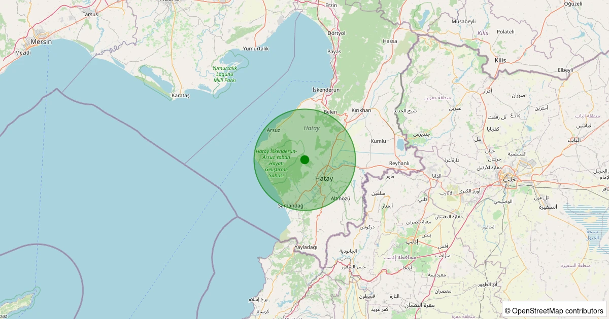 Son 7 gün içinde Antakya - Kisecik noktasından 100 km yarıçap içerisinde meydana gelen diğer depremler: