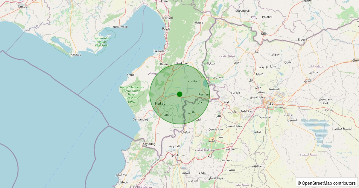 Son 7 gün içinde Antakya - Melekli noktasından 100 km yarıçap içerisinde meydana gelen diğer depremler: