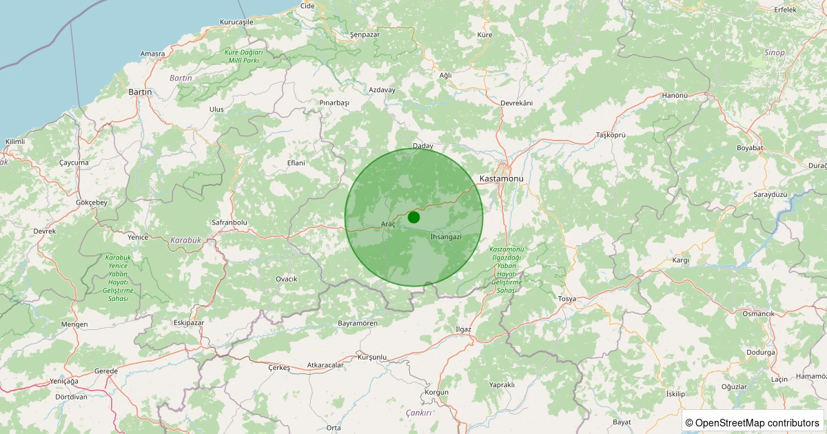 Son 7 gün içinde Araç - Huruçören Köyü noktasından 100 km yarıçap içerisinde meydana gelen diğer depremler: