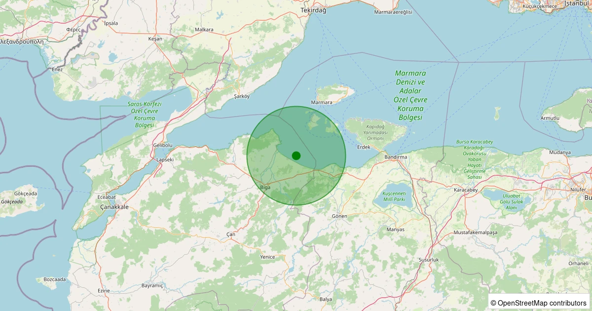 Son 7 gün içinde BOZLAR-BIGA noktasından 100 km yarıçap içerisinde meydana gelen diğer depremler: