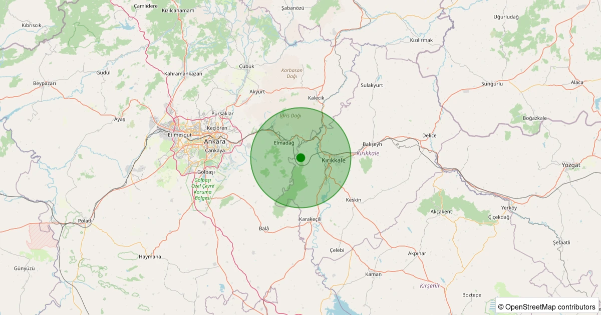Son 7 gün içinde Yahşihan - Kılıçlar Köyü noktasından 100 km yarıçap içerisinde meydana gelen diğer depremler: