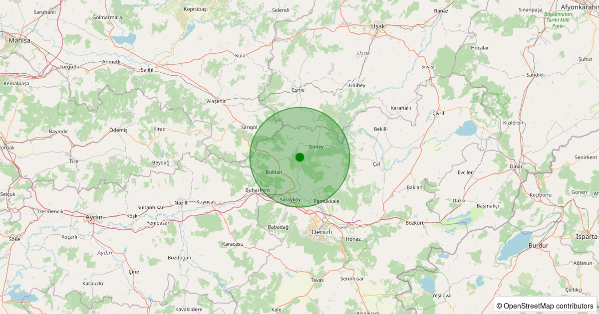 Son bir hafta içerisinde Denizli şehri Güney - Hamidiye noktasından 100 km yarıçap içerisinde toplamda 196 deprem kaydedilmiştir. Bu depremlerden en büyüğü 3.9 büyüklüğünde ve en sığ odaklısı 0.00 kilometre derinlikte gerçekleşmiştir.