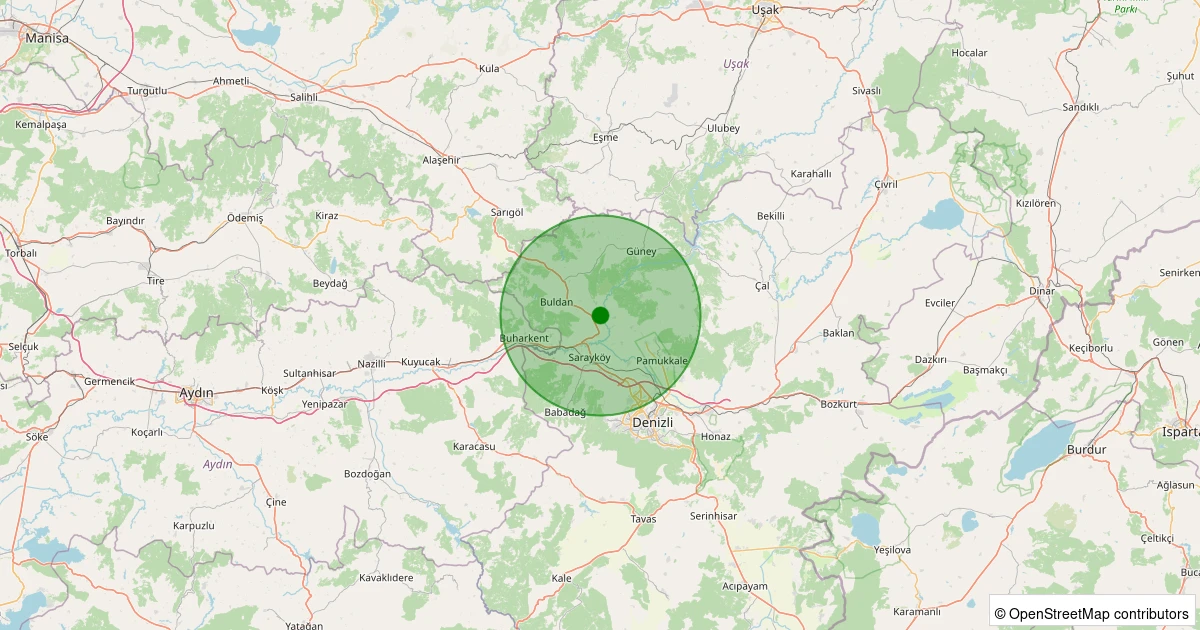 Son 7 gün içinde Buldan - Yenicekent noktasından 100 km yarıçap içerisinde meydana gelen diğer depremler: