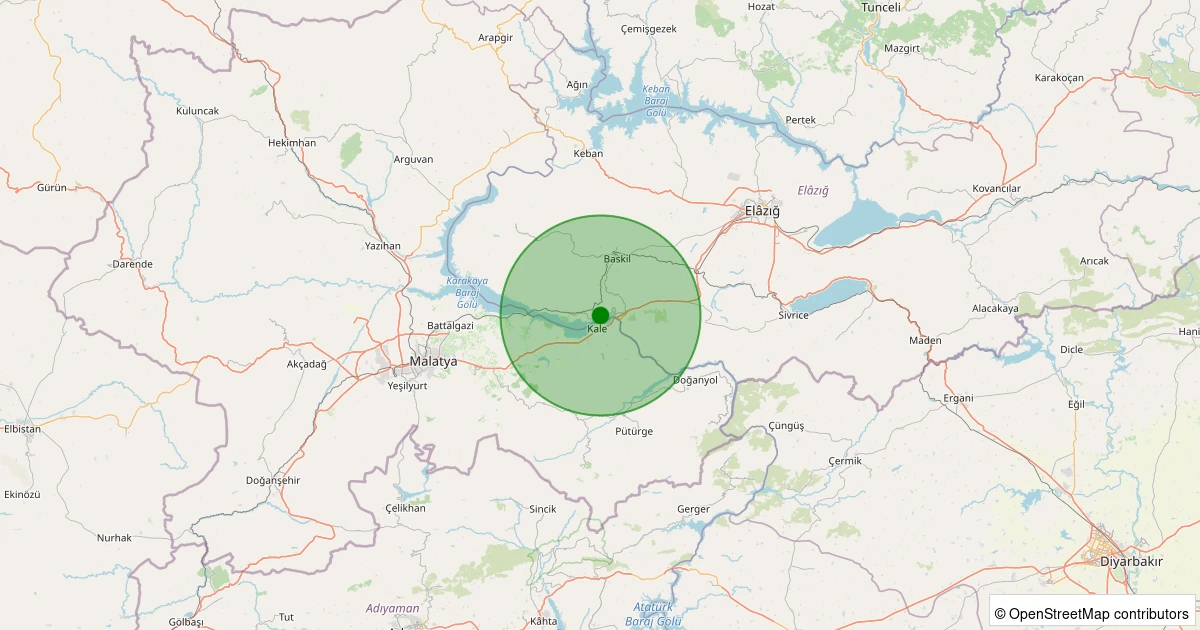 Son 7 gün içinde Baskil - Habibuşağı Köyü noktasından 100 km yarıçap içerisinde meydana gelen diğer depremler:
