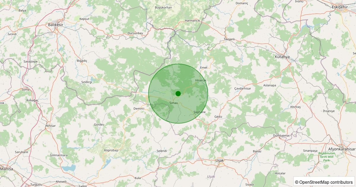 Son 7 gün içinde Simav - Karacaören Köyü noktasından 100 km yarıçap içerisinde meydana gelen diğer depremler: