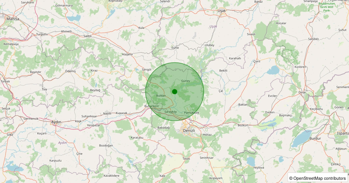 Son 7 gün içinde Buldan - Yenicekent noktasından 100 km yarıçap içerisinde meydana gelen diğer depremler: