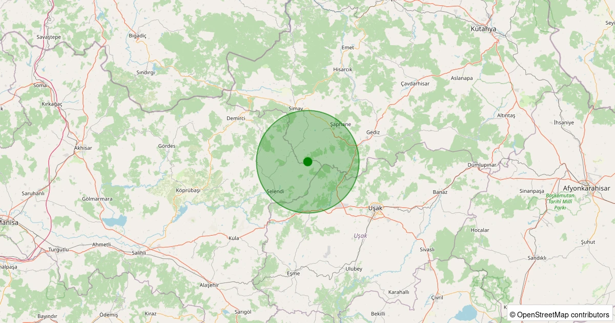 Son 7 gün içinde Simav - Çakırlar Köyü noktasından 100 km yarıçap içerisinde meydana gelen diğer depremler: