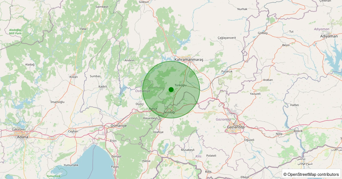 Son 7 gün içinde Türkoğlu - Küçükimalı noktasından 100 km yarıçap içerisinde meydana gelen diğer depremler: