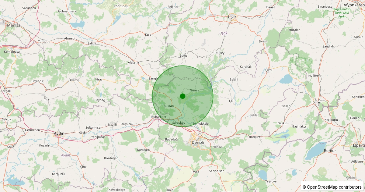 Son 7 gün içinde Buldan - Yenicekent noktasından 100 km yarıçap içerisinde meydana gelen diğer depremler: