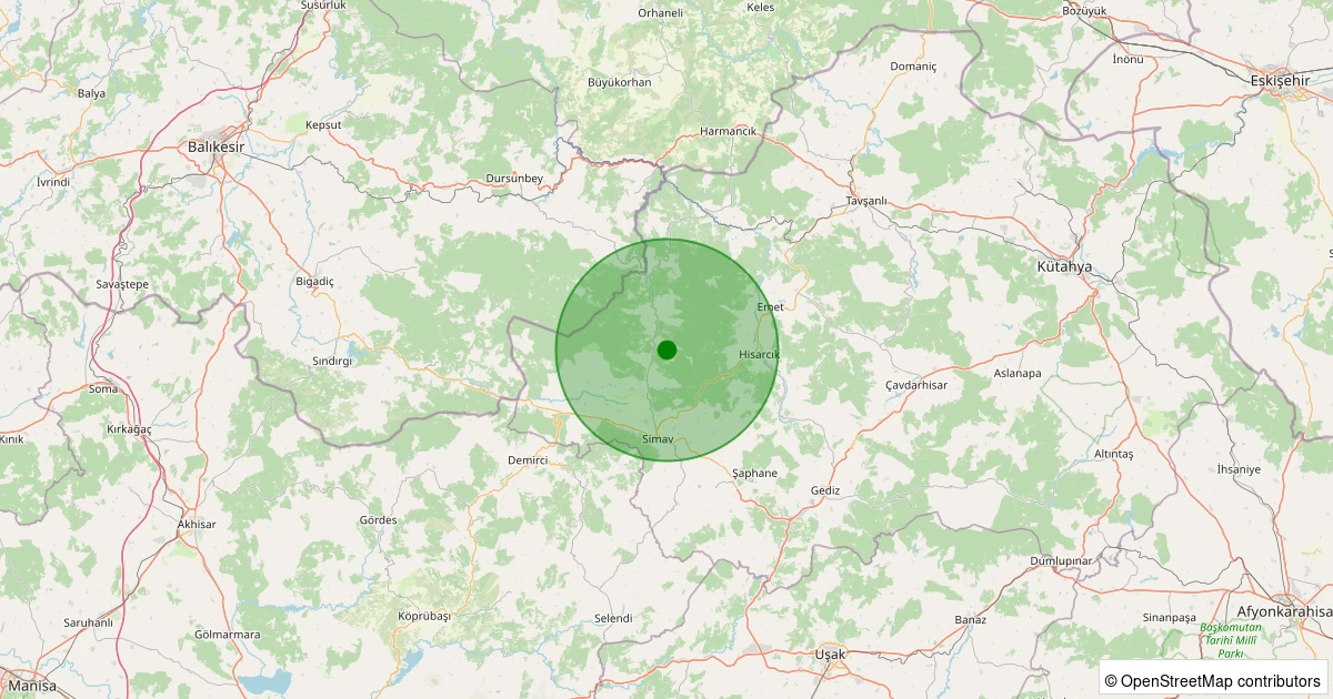 Son bir hafta içerisinde Kütahya şehri Simav - Yeşildere Köyü noktasından 100 km yarıçap içerisinde toplamda 563 deprem kaydedilmiştir. Bu depremlerden en büyüğü 3.0 büyüklüğünde ve en sığ odaklısı 0.00 kilometre derinlikte gerçekleşmiştir.