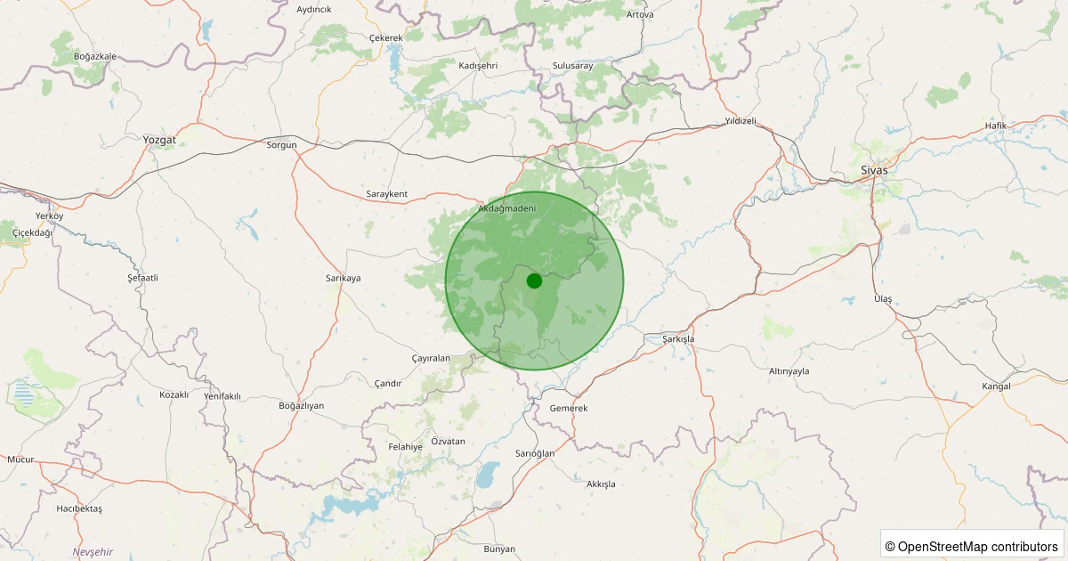 Son 7 gün içinde Gemerek - Çat Köyü noktasından 100 km yarıçap içerisinde meydana gelen diğer depremler: