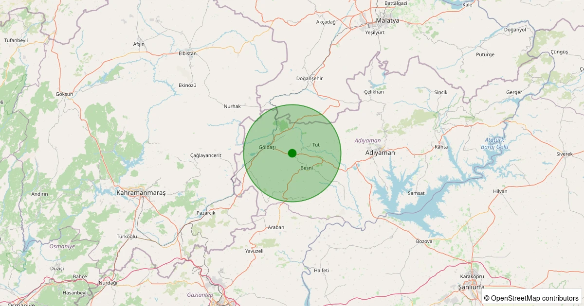 Son 7 gün içinde Besni - Burunçayır Köyü noktasından 100 km yarıçap içerisinde meydana gelen diğer depremler:
