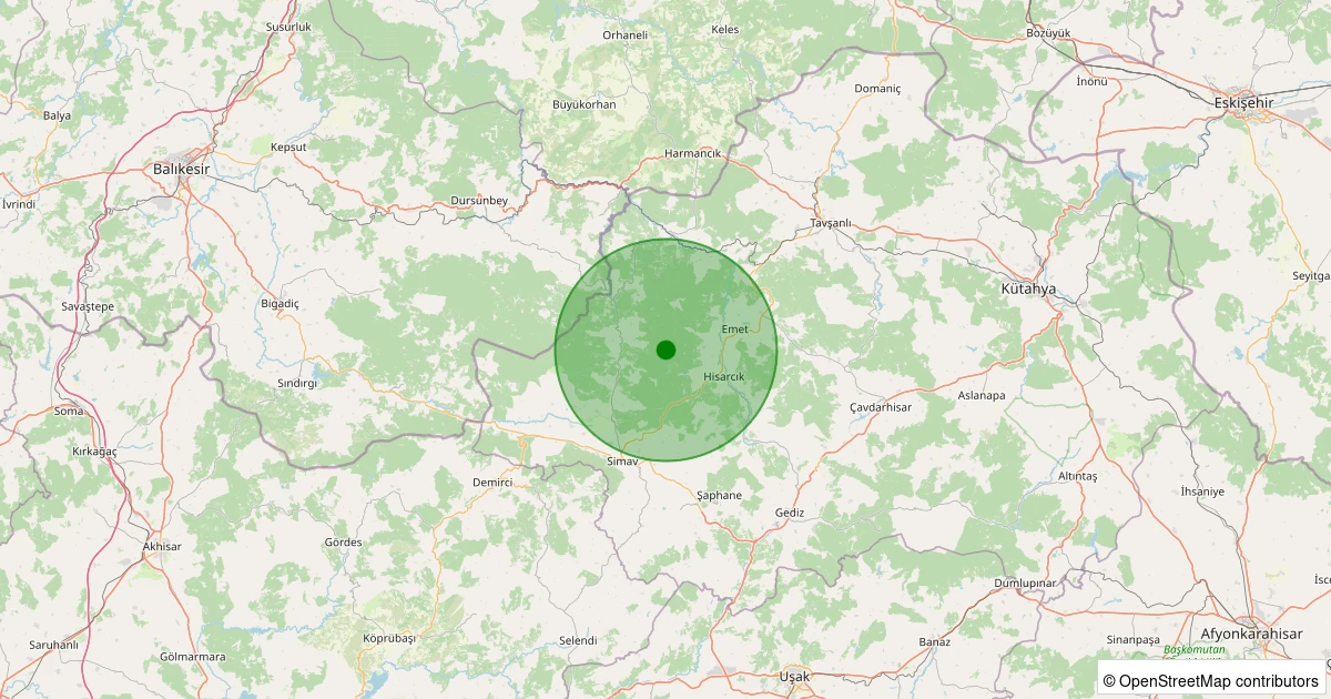 Son 7 gün içinde Emet - Yenice Çimenlik noktasından 100 km yarıçap içerisinde meydana gelen diğer depremler: